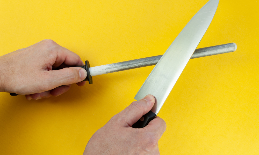 Review safety tips for proper knife and rod handling to minimize the risk of accidents during the sharpening process.